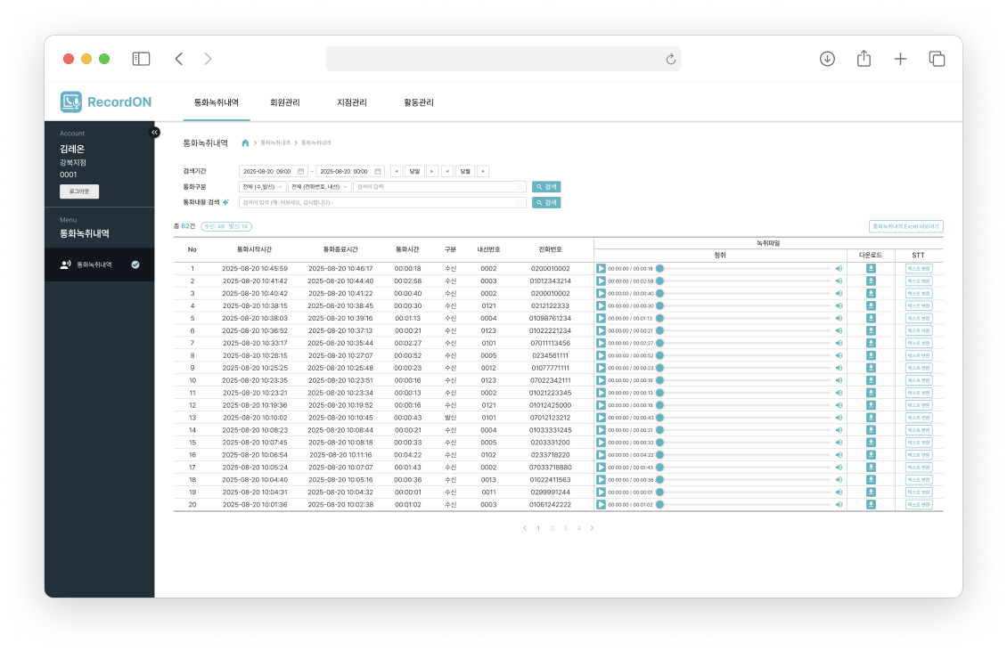 수집항목 : 매장명, 업종, 연락처